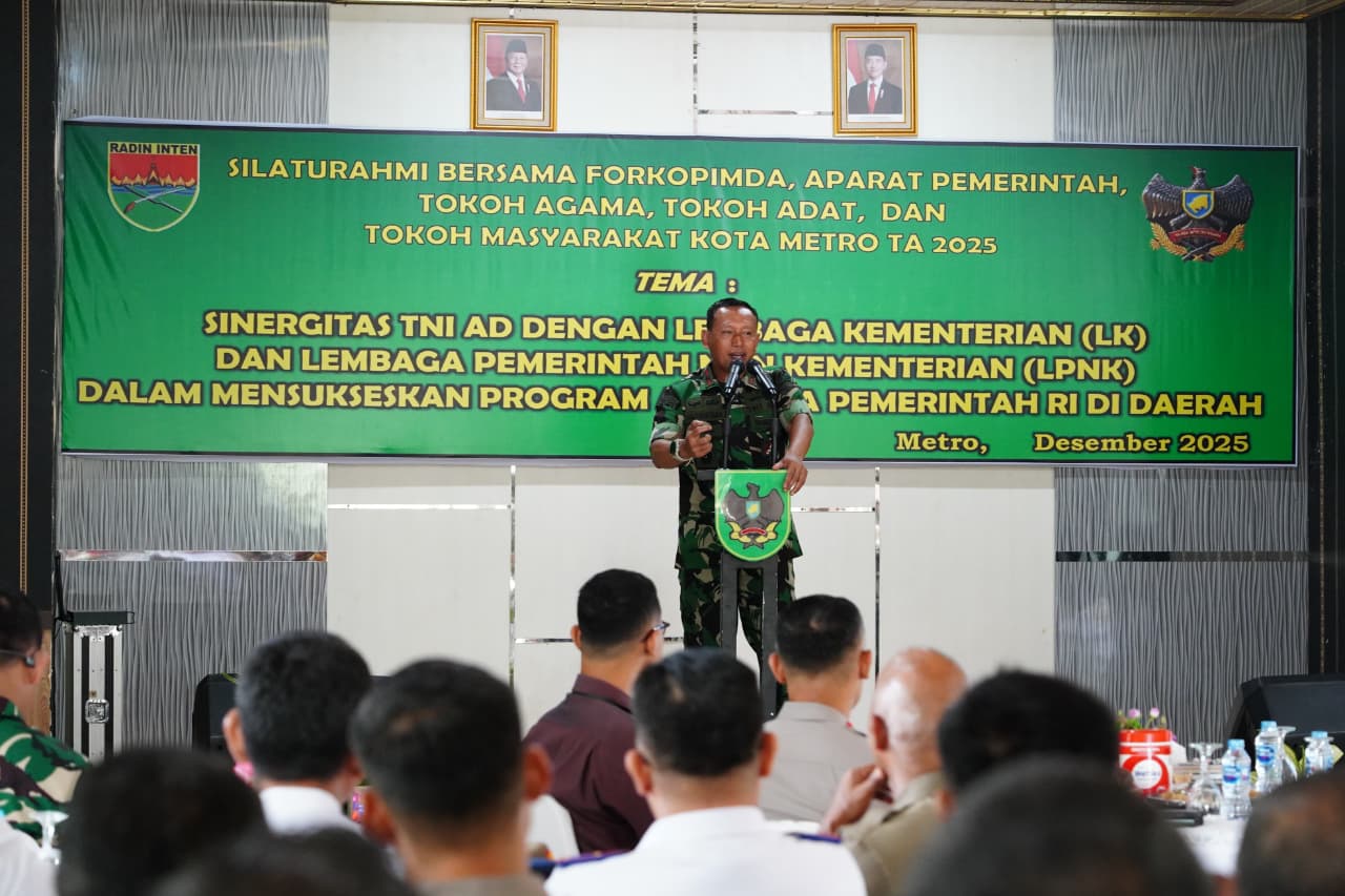 Silaturahmi Tahun Anggaran 2025 ini mengusung tema “Sinergitas TNI AD dengan Lembaga Kementerian (LK) dan Lembaga Pemerintah Non Kementerian (LPNK) dalam Mensukseskan Program Asta Cita Pemerintah RI di Daerah.” Kegiatan dipimpin langsung oleh Danrem 043/Gatam Brigjen TNI Haryantana, S.H., serta dihadiri Wali Kota Metro H. Bambang Iman Santoso, S.Sos., M.Pdi.