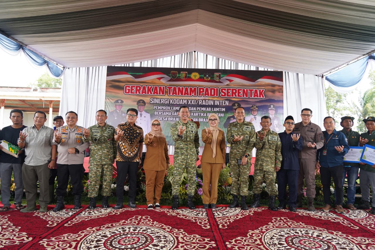 Sementara itu, Pangdam XXI/Radin Inten, Mayjen TNI Kristomei Sianturi, S.Sos.,M.Si., (Han), menegaskan bahwa gerakan tanam padi serentak ini sejalan dengan kebijakan Presiden Prabowo Subianto yang menempatkan ketahanan pangan sebagai fondasi kedaulatan bangsa.