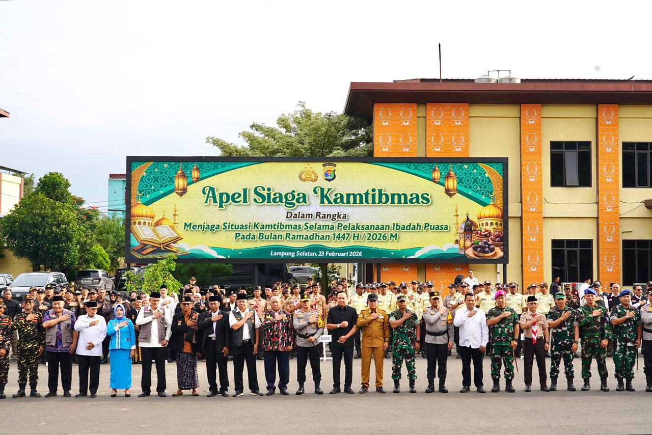 Metro, Lampungpagi.com – Kepala Staf Korem (Kasrem) 043/Gatam Kolonel Inf Sumarlin Marzuki., S.E., M.Han., Senin (23/2/2026) menghadiri kegiatan Apel Siaga Kamtibmas dalam rangka menjaga situasi Kamtibmas selama pelaksanaan ibadah puasa pada bulan Ramadan 1447 H / 2026 M, yang di pimpin Kapolda Lampung Irjen Pol. Helfi Assegaf, S.I.K., M.H., bertempat di lapangan Apel Polda Lampung Jl. Terusan Ryacudu, Way Huwi, Kecamatan Jati Agung, Kabupaten Lampung Selatan.